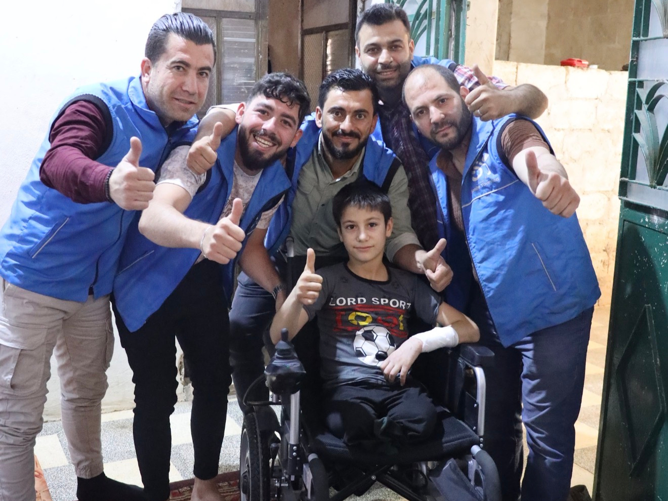 Fourniture d'un fauteuil roulant électrique, de vêtements, de son traitement pour plusieurs mois, denrées alimentaires et équipements ménagers pour le logement de sa famille.