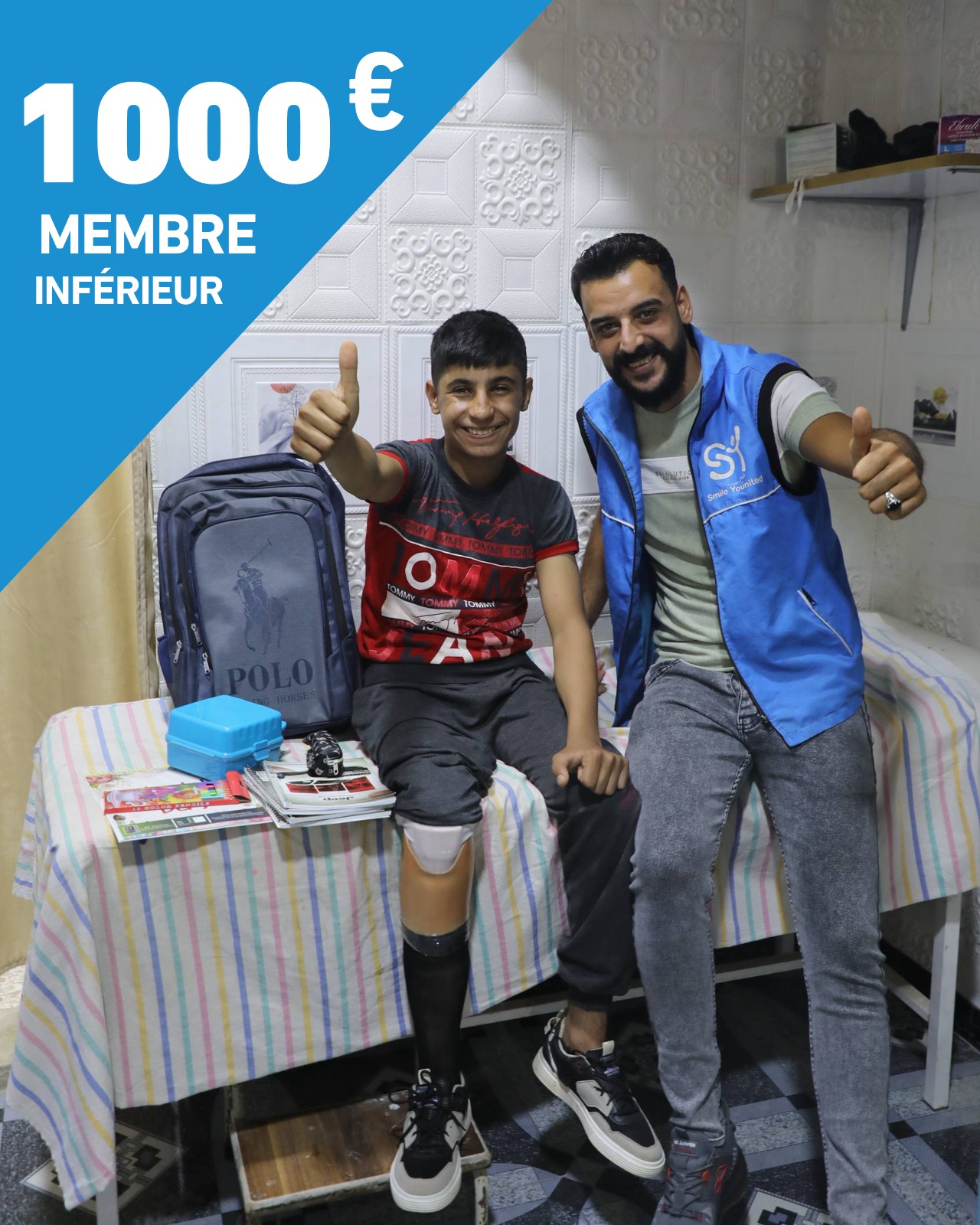 Après 14 ans de conflit, et un séisme dévastateur en février 2023, des milliers d'hommes, de femmes et d'enfants ont été gravement blessés, et vivent aujourd'hui avec des handicaps lourds. Face à cette réalité, notre ONG s'investit dans le soutien au handicap en finançant la conception et l’appareillage de prothèses, ainsi que les frais liés aux opérations chirurgicales lorsqu’elles sont nécessaires, pour permettre à ces blessés de se réinsérer dans la vie sociale et professionnelle, et de retrouver un quotidien aussi normal que possible.